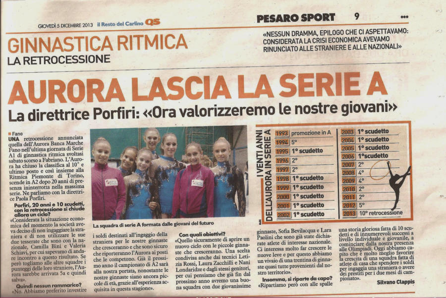 nostre ginnaste Aurora Fano rimangono in terza posizione, dietro Sport